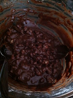 3. Sift together the confectioner’s sugar, cocoa powder and salt. Stir in walnuts, then add the egg whites and vanilla. Stir until well-combined and no flecks of sugar remain.