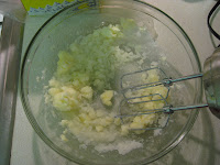 The Babble.com author recommended using “a bamboo skewer, knife or other pointy object”; I used a knife. It is somewhat tricky to mix the two together because they are both thick and sticky, but with a little elbow grease it does happen.