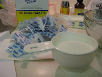 Now, full disclosure: I had a slight misstep here – I knew I had sugar in my pantry but didn’t realize it was only sugar packets. In case you’ve ever wondered how many packets go into ¾ cup of sugar, it’s about [this] many: